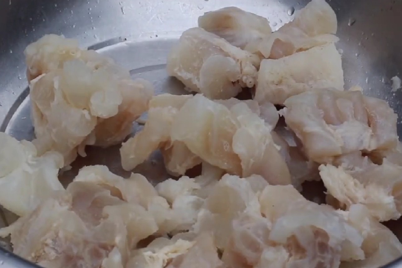1、买两斤牛蹄筋,今天我买的是脚掌部位的筋腱,就像拳头一样的牛蹄筋清洗干净。