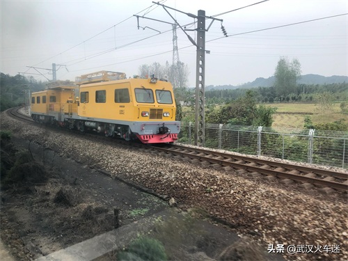 杨寨站通过,从这里开始到鸡公山站是2008年以后京广铁路裁弯曲直后新修的线路。