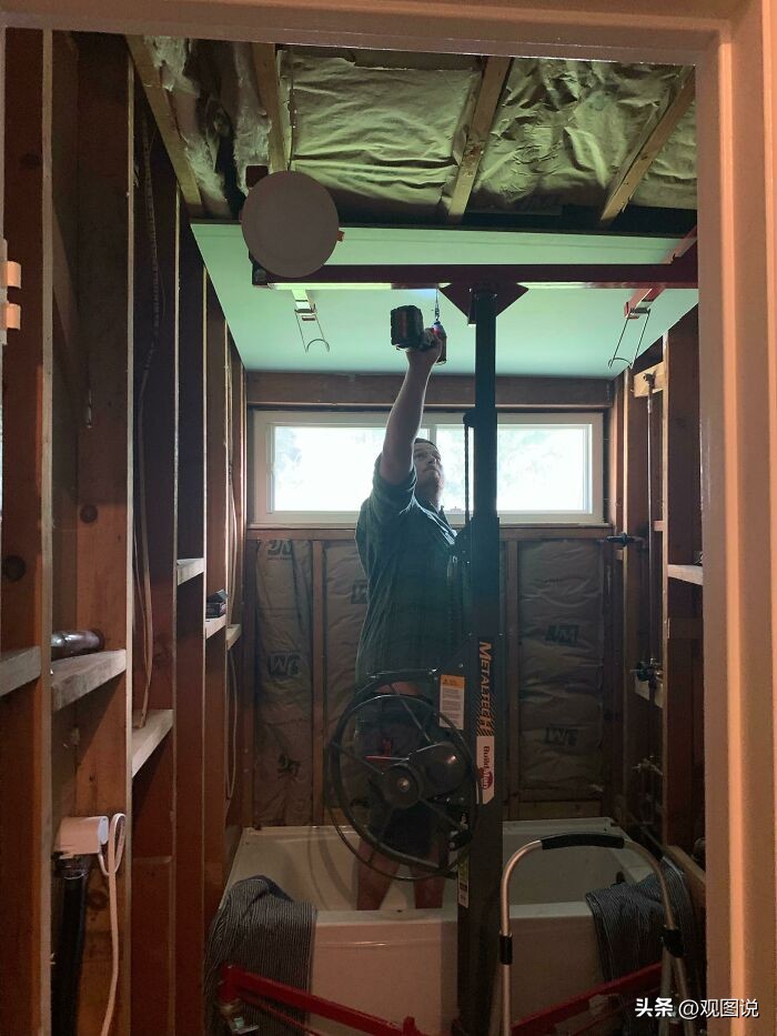16 石膏板升降机。这使得安装天花板石膏板变得更加容易