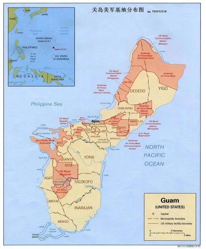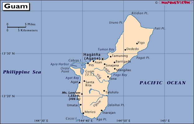 关岛位于西太平洋马里亚纳群岛最南端,是属于马里亚纳群岛和密克罗尼亚群岛最大岛屿。关岛位于菲律宾以东,密克罗尼西亚联邦以北和马绍尔群岛以西,这里周边拥有日本,东方龙国,菲律宾,印度尼西亚和朝鲜半岛。关岛是美国在西太平洋重要据点,这里距离东方龙国大陆3000千米,距离朝鲜为3540千米,距离美国夏威夷大约为6437千米。关岛总面积为541平方千米,人口为16万。关岛是属于热带雨林气候,一年高温多雨,年降水量为2000mm以上,11—5月份是干季,降水量比较少。