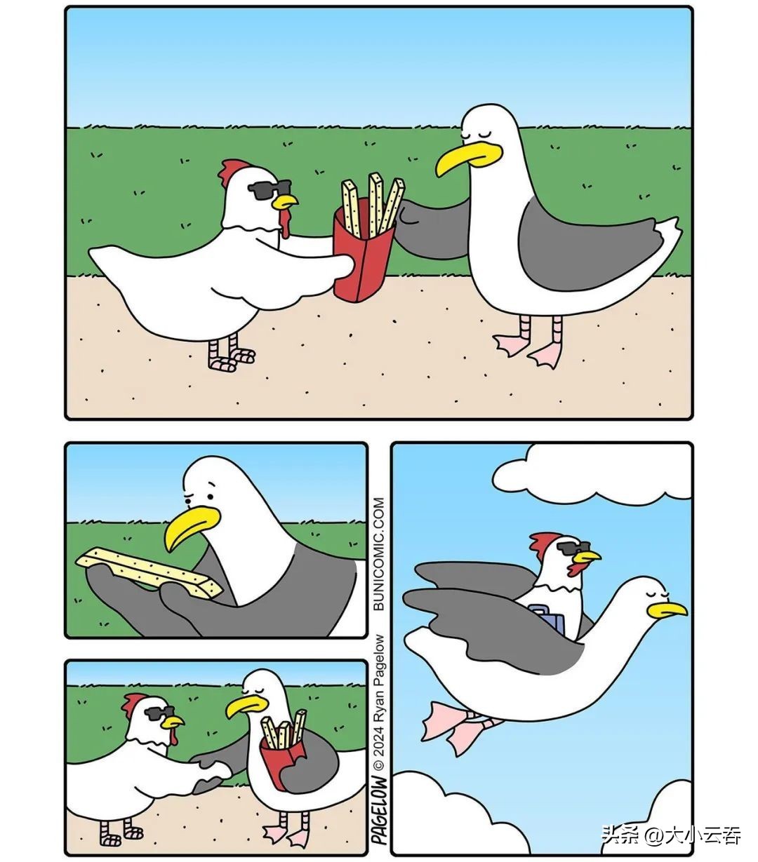在这部漫画作品,除了担任主角的布尼外,还有许多人物,例如,布尼的怪人爸爸,布尼一直暗恋的女孩,甚至,许多食物、植物、动物也拥有了人类的行为,这样一来,这部漫画作品变得更加丰富有趣起来,接下来,我们就一起来欣赏一下瑞恩在最近一段时间绘制的,关于兔子布尼的系列漫画作品吧。