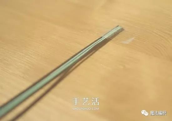 编织到合适长度后,剪去多余的部分。