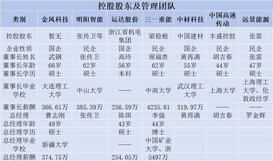 核心高管团队年龄最大的是金风科技董事长武钢,目前为66岁。