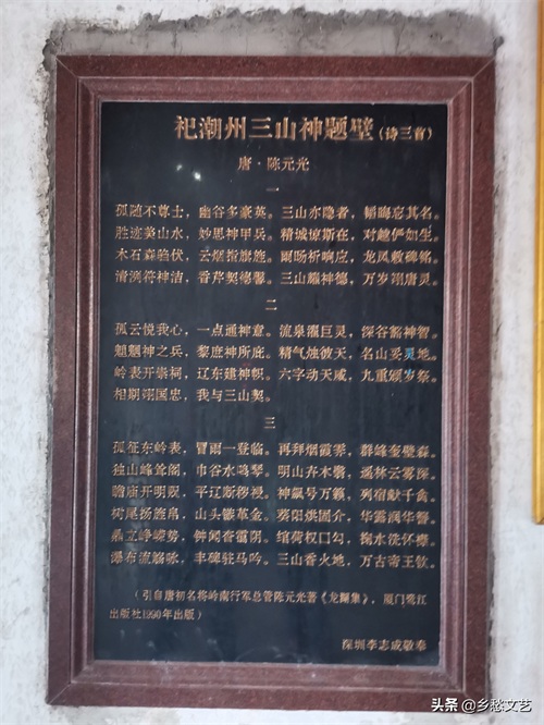 现庙中有据明代《永乐大典》所收元代翰林国史院编修官刘希孟撰《潮州路明贶三山国王庙》记载而立的唐维元和十四年韩愈的《祭界石神文》及元代刘希孟的《明贶庙记》碑文。