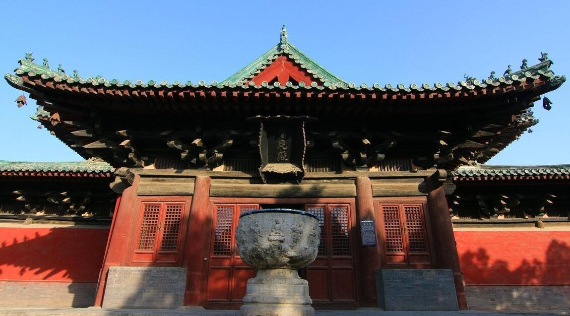 在隆兴寺的摩尼殿内,殿北侧有座五彩悬塑的假山,山上祥云缭绕,峰峦叠嶂,正中端坐着的塑像就是观音菩萨。