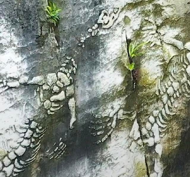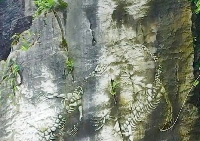 贵阳喀斯特公园,绝壁上的两只“亿年”生物化石,令人惊奇