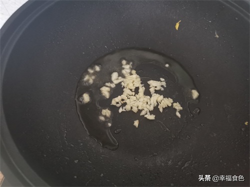 6、大蒜拍碎去皮,放入锅中小火炒香,炒出蒜香味。