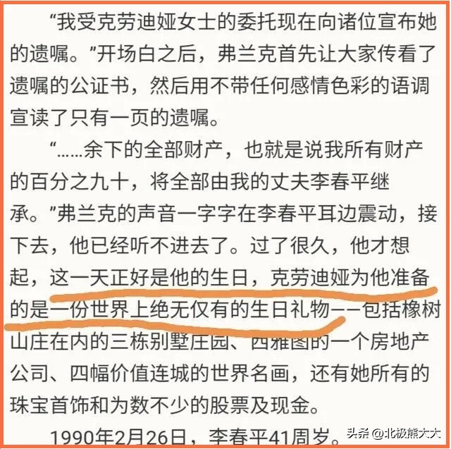 1990年2月26,李春平生日这天,律师宣读了遗嘱,宣布富婆妻子的遗产全由李春平继承。