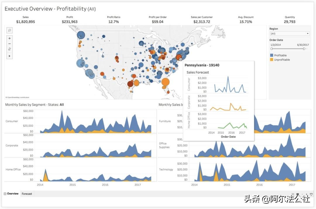Tableau的价值毋庸置疑,它极大程度降低了商业数据分析的门槛,打破了传统商业数据分析中的繁复,通过更简易的分析过程和更直观易读的分析结果推动了“数据分析民主化”进程:即便不具备专业的数据分析背景,也能通过Tableau理解商业数据,最终提高了业务决策效率。
