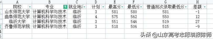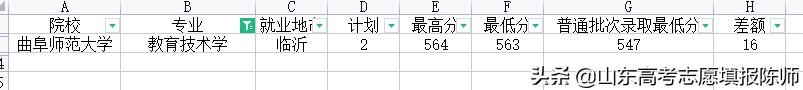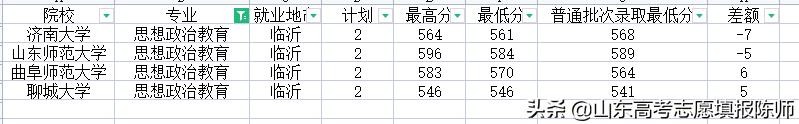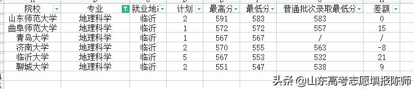 地理科学专业有6所院校招生,录取最低分583——547,临沂大学录取分数高出正常录取21,曲师大高出15分,济南大学又是比正常录取低。