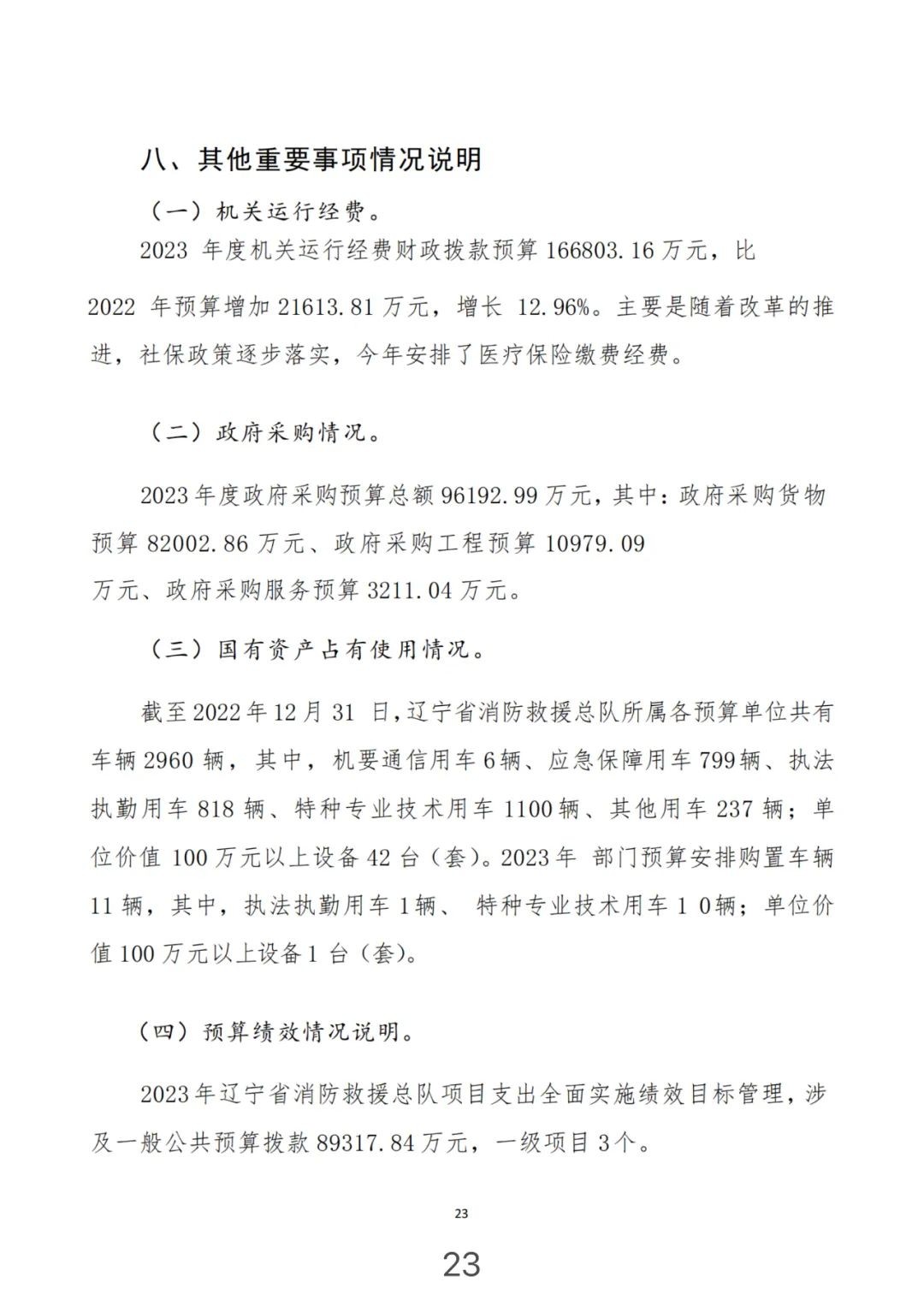 辽宁省消防救援总队2023年部门预算