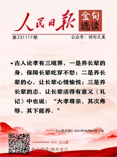 人民日报金句选读|20231117:古人论孝有三境界,一是养长辈的…