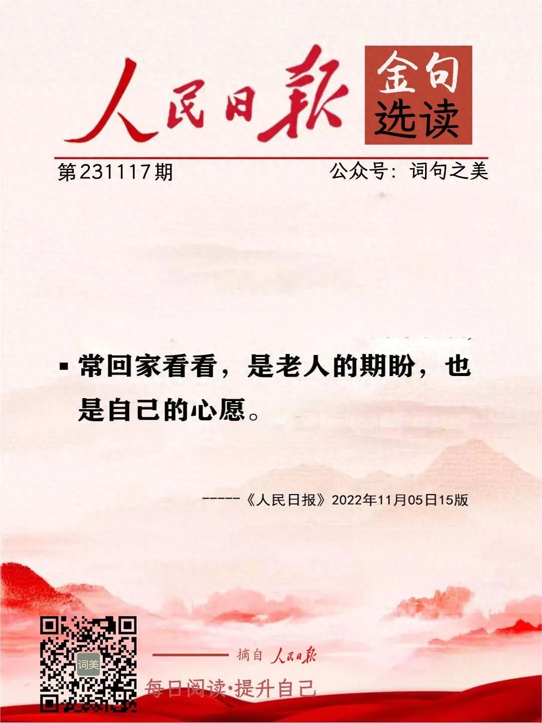 ▌常回家看看,是老人的期盼,也是自己的心愿。一一《人民日报》2022年11月05日15版