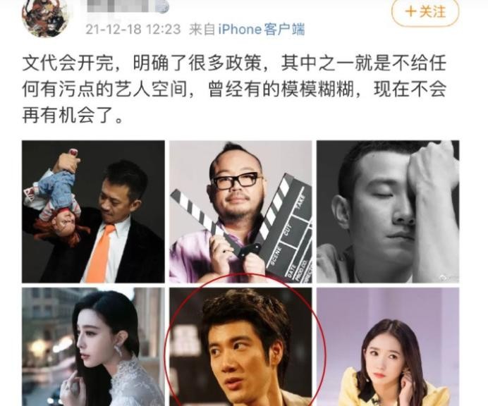 王力宏事件被热议期间,有参加文代会的圈内人士还表示,会议上明确了很多政策,其中之一就是不给任何污点的艺人空间,以前模模糊糊,现在不会再有机会了,而配图中,就包括王力宏在内。