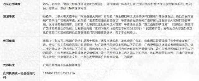 根据信用中国网站披露的信息,阿里健康大药房医药连锁有限公司因违反广告法规定而被处罚。其中,涉及的广告包括保健食品、药品及医疗器械广告,以及普通食品宣传等。这些广告存在未经审查、虚假宣传、涉及疾病治疗功能等问题,严重误导了消费者。