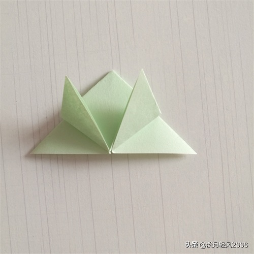 左侧上层的角也对称的折到下图所示位置
