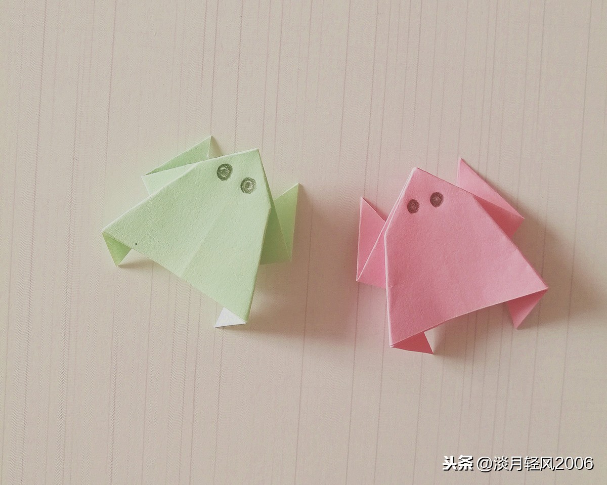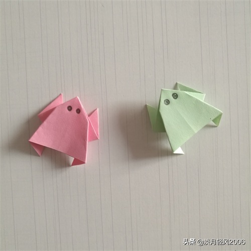 用相同的方法又折了一个粉色的小青蛙,见下图