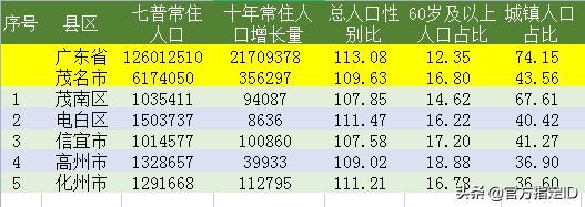 茂名市各区市人口一览:全部区市都超百万人,人口最多为电白区