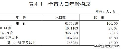 茂名市常住人口中,0-14岁人口为1671103人,占27.07%;15-59岁人口为3465663人,占56.13%;60岁及以上人口为1037284人,占16.80%,其中65岁及以上人口为746254人,占12.09%。60岁及以上人口占比16.80%在广东省中排第7位,高于广东省的12.35%,老龄化较为严重。