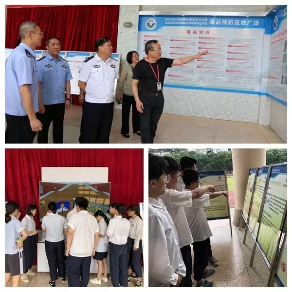 参加活动的全体人员还参观了龙湖区禁毒办、林百欣科技中专“禁毒宣教广场”。该广场于2019年1月14日正式启用,通过丰富多彩的图文展板和形态各异的仿真毒品模型,以及轮番播放的禁毒宣传影视资料,全方位多层次进行毒品预防教育。