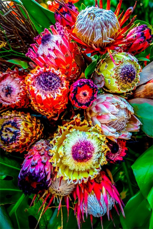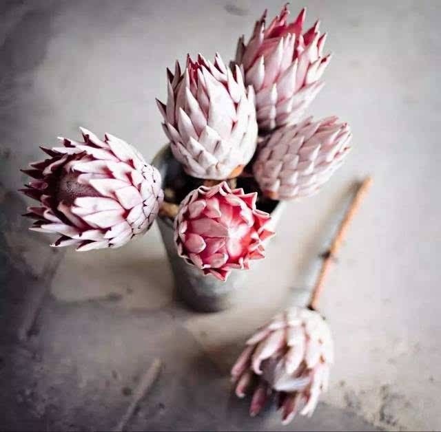 帝王花的花朵还能够制作成各种花篮和手捧花,因其独特的外形和众多的花色,在表白和纪念日时也能起到非常好的效用。