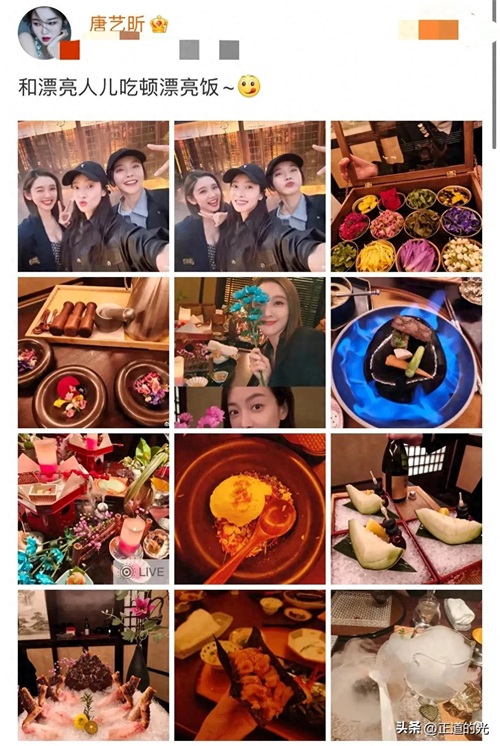 唐艺昕和张佳宁在社交平台上晒出与宋茜三人闺蜜团聚会的照片,三人喝花茶,吃牛排和帝王蟹,一起品昂贵的红酒超阔气。