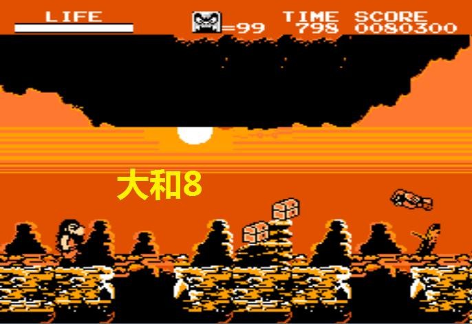 当年我在FC主机上玩的时候,只剩下最后一个火鸟雕刻图破片拿不到,后来在模拟器上复习,仍然是拿不到。请教老司机才明白,蹲下跳起可以砸破脚下的地形,太古3某个怨念的冰洞终于可以进入了,如此我才终于进入了隐藏的大和8拿到了最后一个火鸟雕刻图破片。