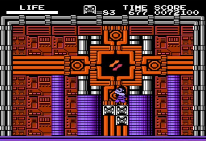 来世5一开始3个宝箱其中一个是握饭(这是有一次一命通关挑战功亏一篑得来的教训)。BOSS场景前面有一个箱子里是握饭,BOSS战与大和4的一样。击破BOSS后可以看到Konami的Logo图案,如下面截图所示。