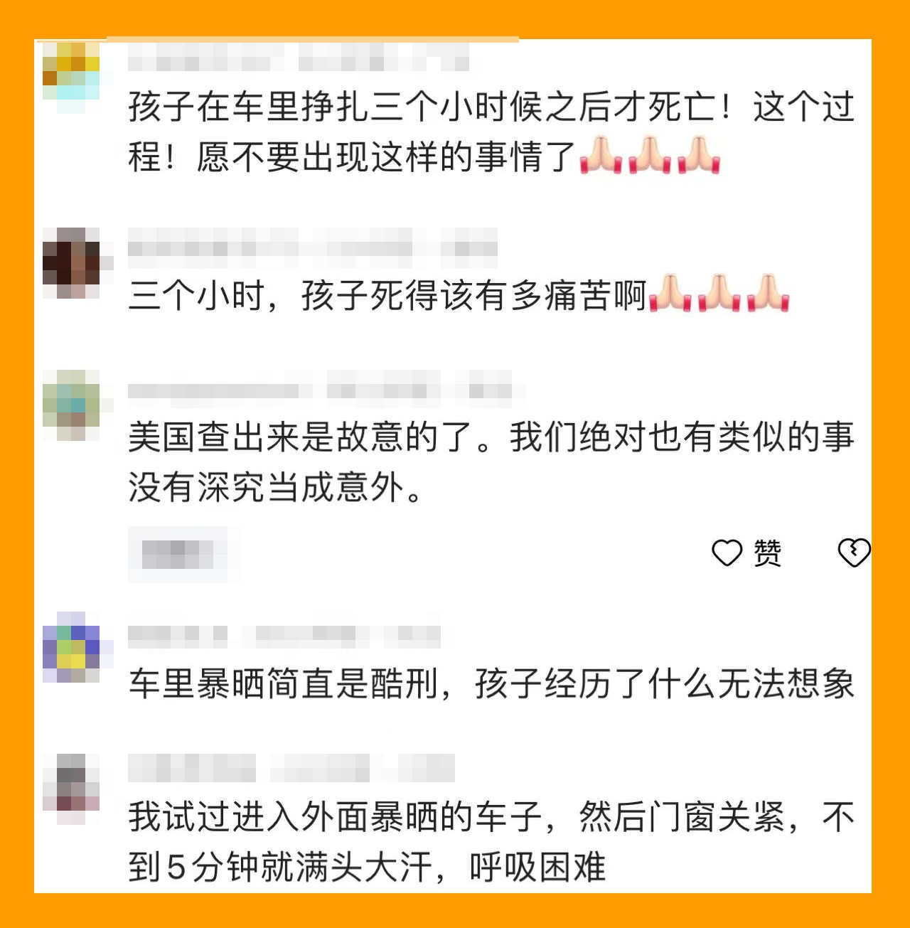 “孩子在车里挣扎三个小时候之后才死亡,这个过程,愿不要出现这样的事情了。”