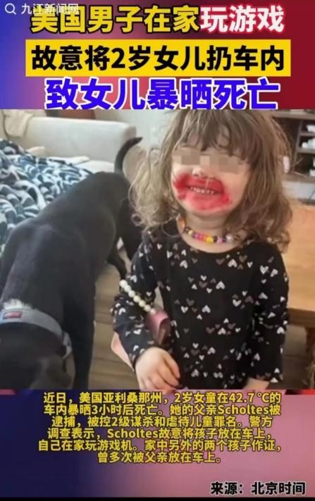 近日一则新闻引发众怒:美国一狠心父亲故意将2岁女儿锁在车内3小时致其死亡。