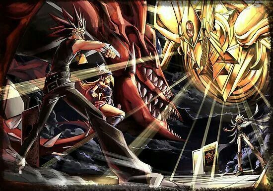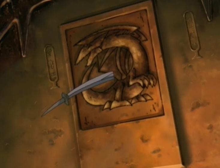 阿图姆利用武藤游戏的陷阱卡效果召唤出了天空龙,但是在之后被击破。