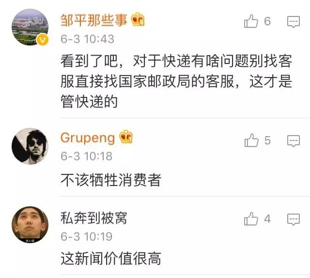 ● 6月1日,国家邮政局即表示,对此事高度重视,切实维护市场秩序和消费者合法权益,决不能因企业间的纠纷产生严重的社会影响和负面效应。