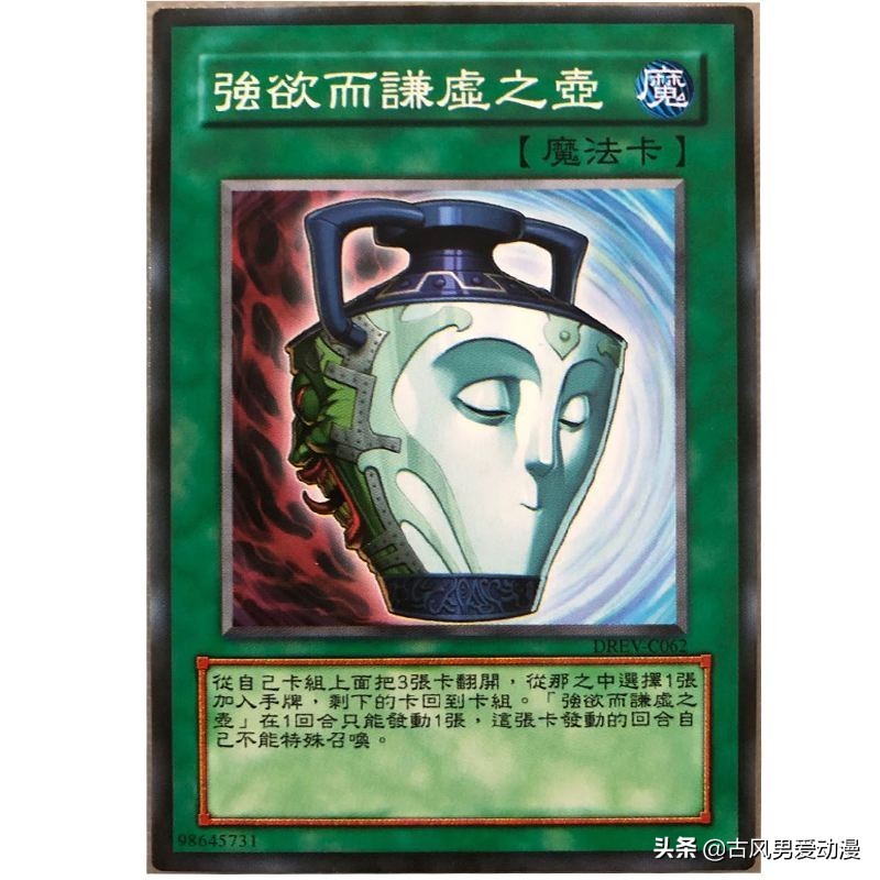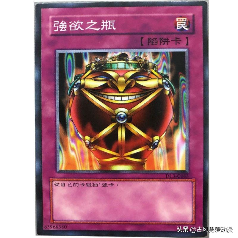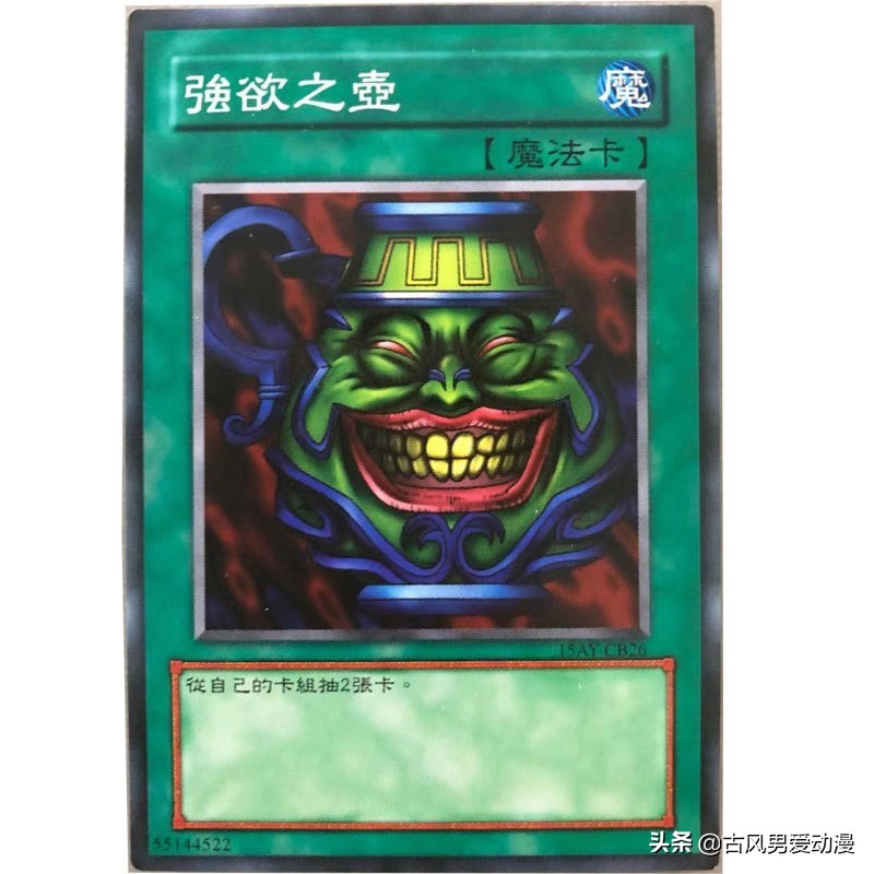 大家好,在游戏王中有一张很好用的抽卡神器,强欲之壶。但由于太好用,在世界级赛事2004变成限制卡,后来在2006年变成禁卡永久被关进小黑屋。