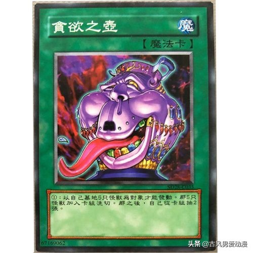 贪欲之瓶大概是贪之壶的亲兄弟,伸出的舌头,满口的彩牙,甚至流出的鼻涕。虽然这张卡不如贪欲之壶的抽两张卡效果好,但取消了墓地卡种是限制卡,针对依赖牌组的卡组是不错的卡。