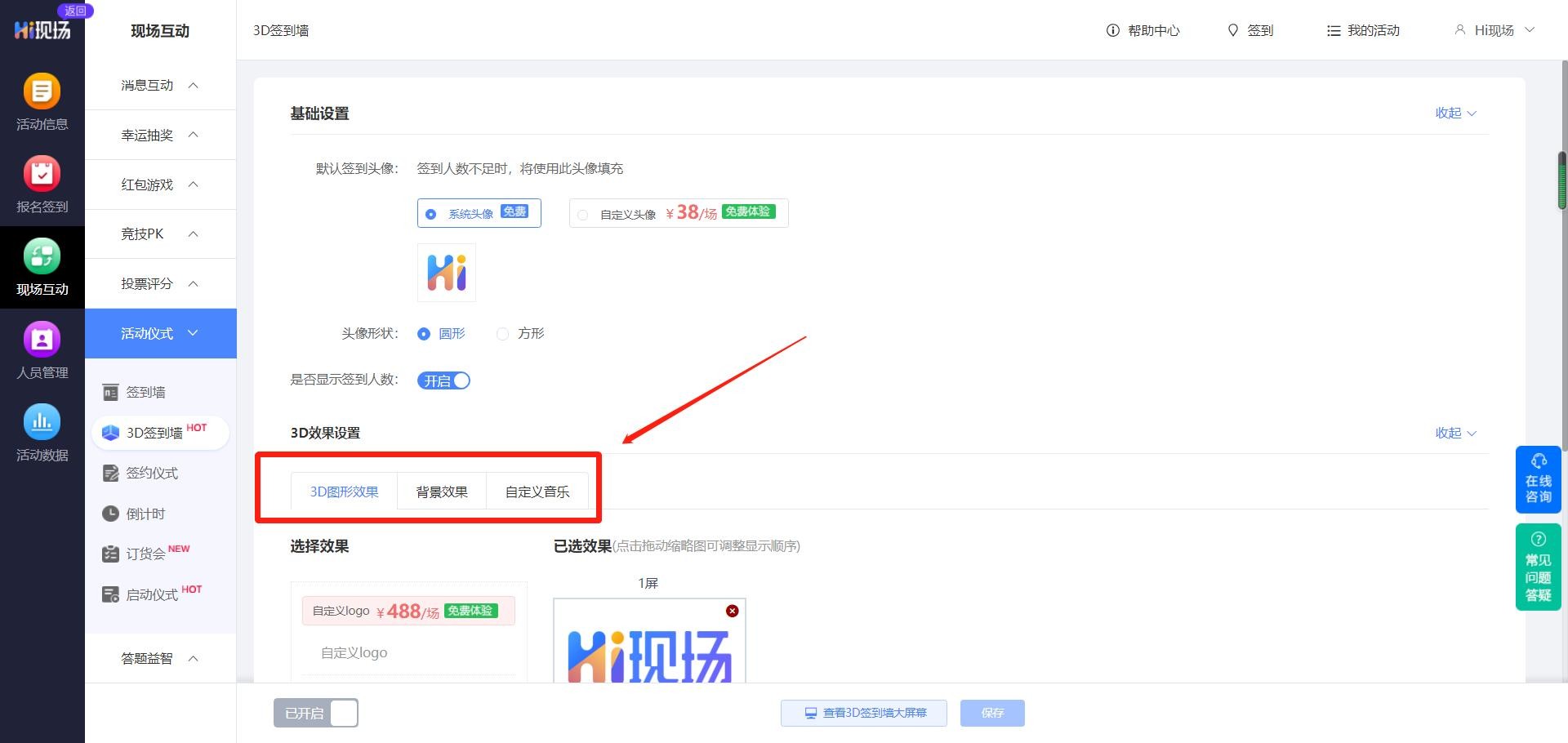 2.3D签到墙基础设置:头像、头像形式、是否显示签到人数
