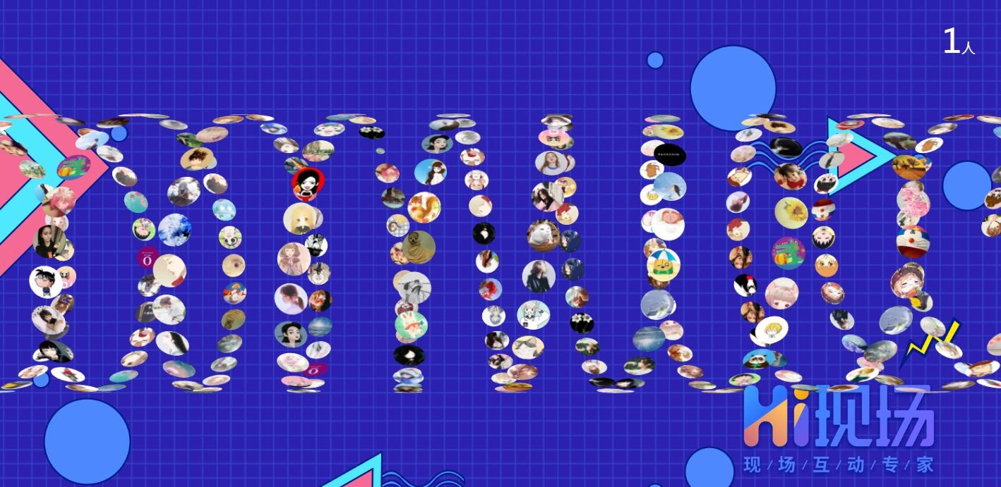 参与者微信扫码,完成签到后头像展示在大屏幕端,排列展示或形成图形