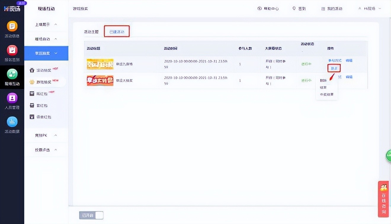 点击“已建活动”可以查看所有已创建的活动明细,且可随时进行编辑;