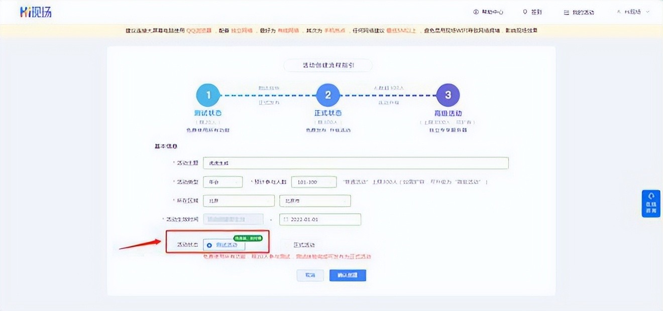 按照流程指引,创建新活动