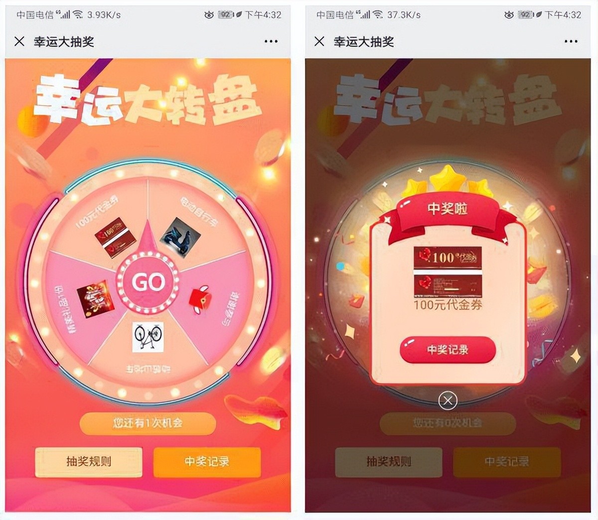 3.中奖后,手机端显示中奖信息