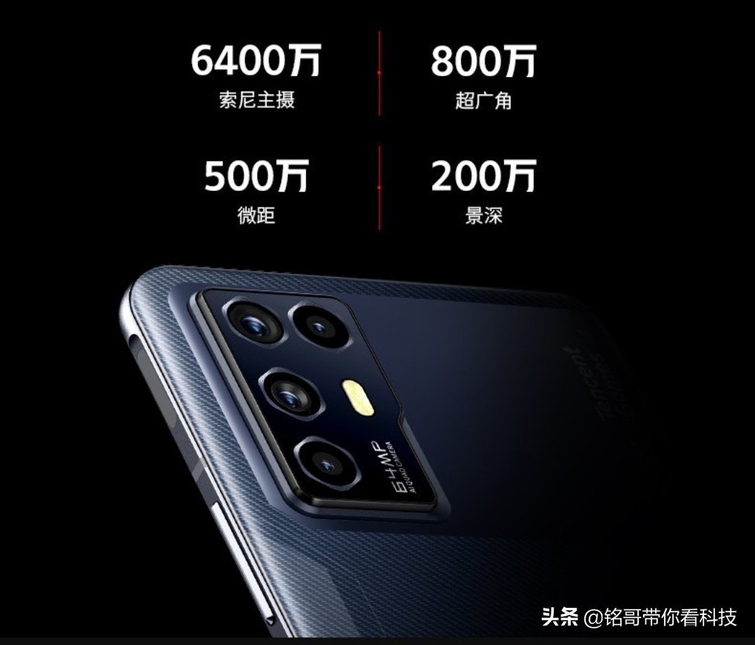手机后置采用四摄方案,一颗超广角6400万高像素AI主摄摄像头、一颗800万像素超广角摄像头、一颗500万像素微距摄像头、一颗200万像素景深摄像头,前置搭载一颗1600万像素自拍摄像头。