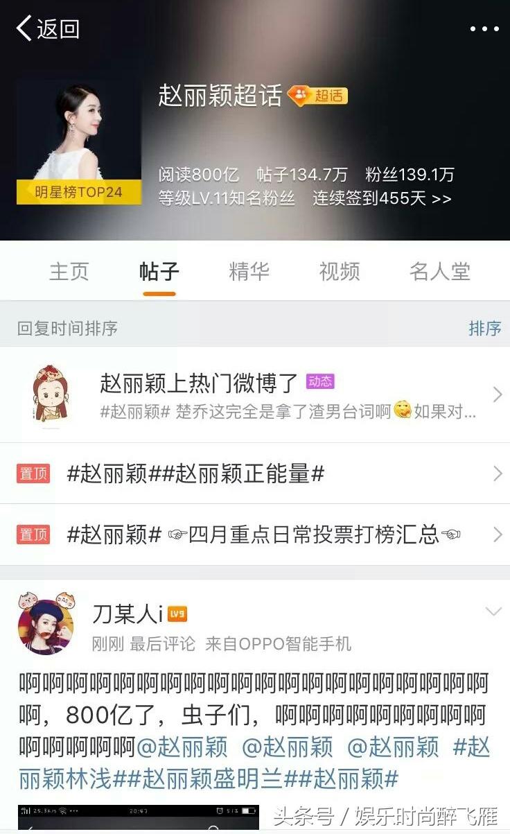 赵丽颖超话成为第一个破800亿的女星超级话题!可以说源自赵丽颖满满的正能量和颖火虫们的大力支持。每个颖火虫陪伴着丽颖,发光发热,尽自己一份微薄之力守护着丽颖。