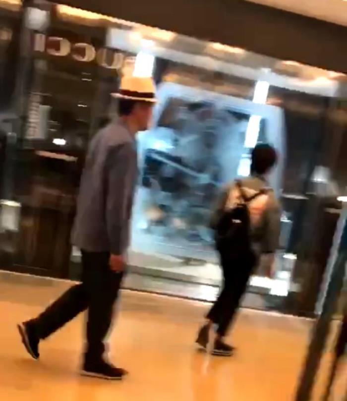 12日,有网友在香港太古广场偶遇正在逛街的张国立和妻子邓婕。