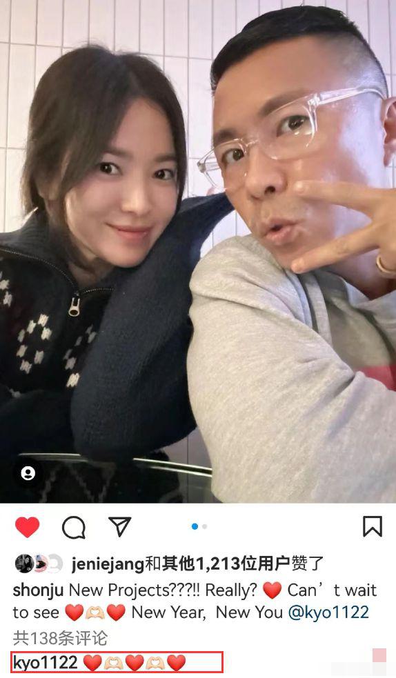 宋慧乔的朋友在晒出她跟他的合照时,还配文表示:" 有新的项目了?真的吗?迫不及待地想看了,新的一年,新的你。" 在文字中晒出了比心的表情包。宋慧乔也在评论区里晒出了比心的表情包,似乎在肯定了他的说法。