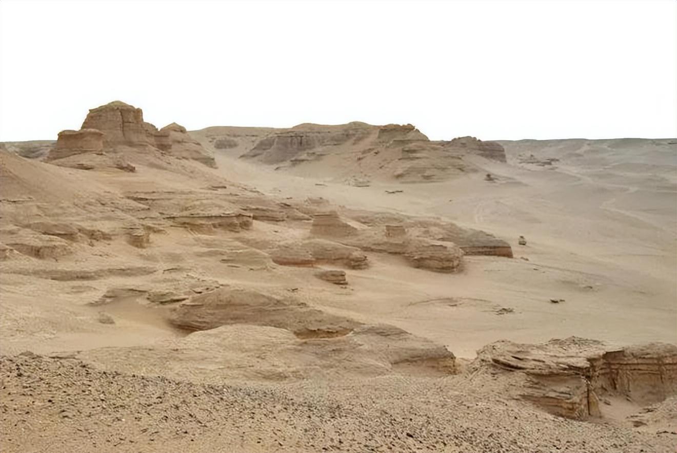 最早对此大碛进行生动描写的是《法显传》,东晋时高僧法显西行取经,从敦煌出发路经沙河:沙河中多有恶鬼、热风,遇则皆死,无一全者。上无飞鸟,下无走兽。遍望极目,欲求度处,则莫知所拟,唯以死人枯骨为标识耳。