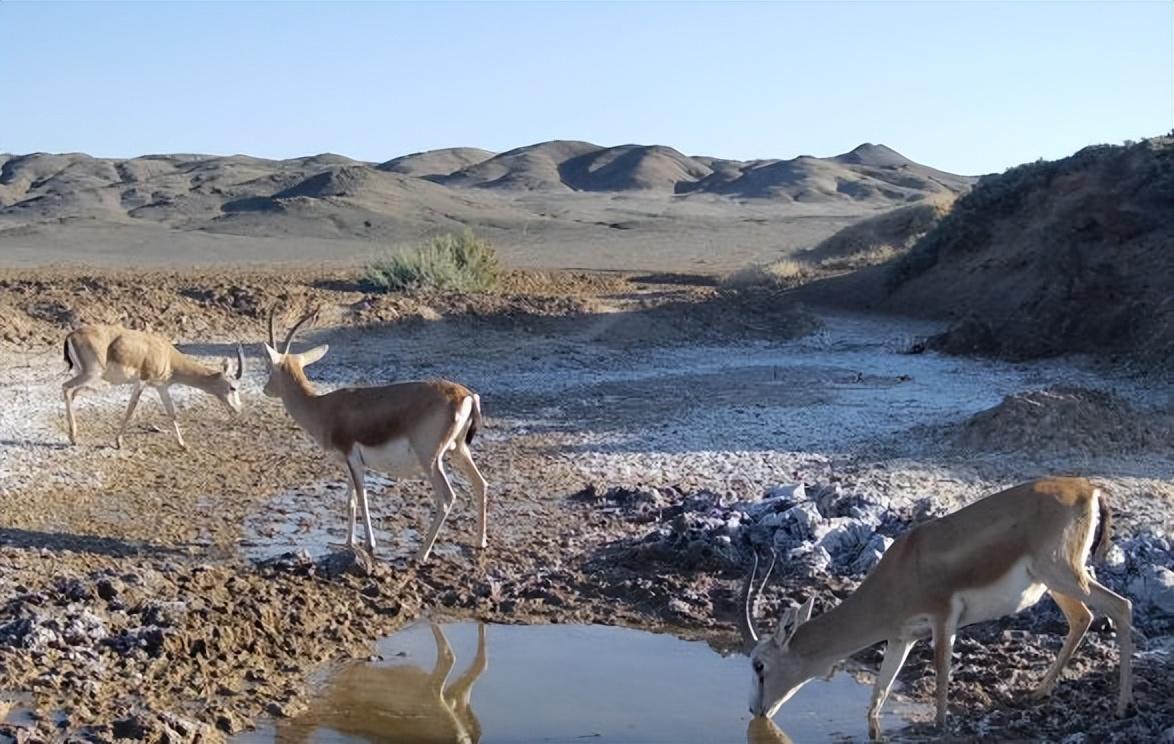 在新疆罗布泊野骆驼国家级自然保护区喝水的的黄羊(鹅喉羚)。融媒体中心记者 张旭辉摄