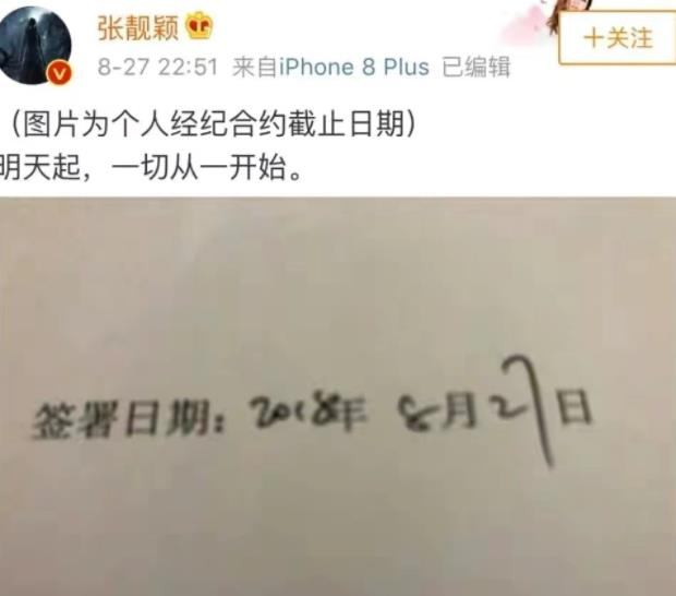 同年8月,张靓颖发文:“明天起,一切从一开始。”