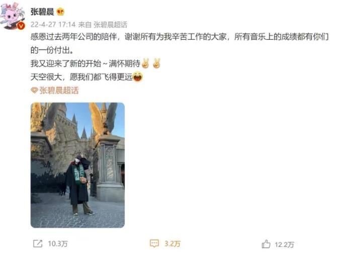 在华谊待了4年之后,张靓颖又跟随着冯轲离开了公司。