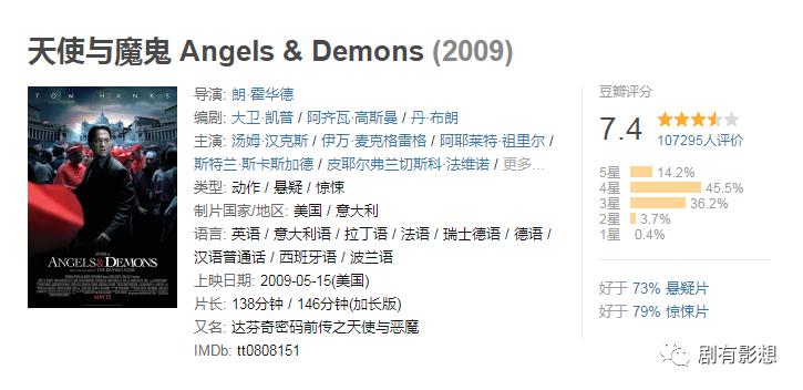 经典影评:比达芬奇密码好看些,因为有明确的大坏蛋嘛。类似“国家宝藏”的情节,但严肃刺激好几倍。当然是因为涉及了宗教和科学两个敏感问题咯。我赞同原著作者的意念,为什么要分那么清呢?两者互相配合不是挺好的!欣赏导演Ron Howard,他是我知道的导演里最会讲故事的。