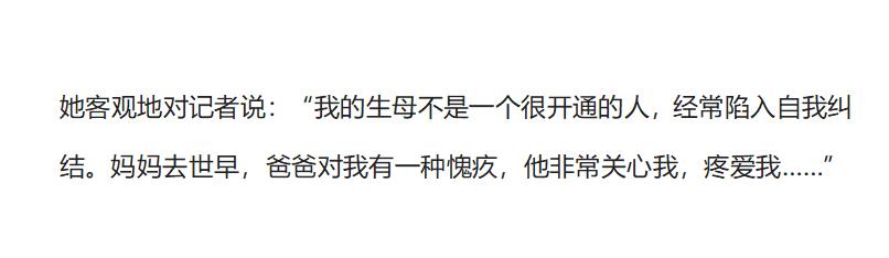 而对于亲生母亲孙涛,唐莉则表示母亲并不是一个很开通的人。