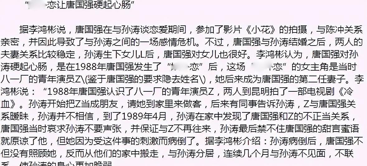 在孙涛父母看来,唐国强和壮丽在当时关系不是一般的暧昧,甚至还被孙涛撞见过。